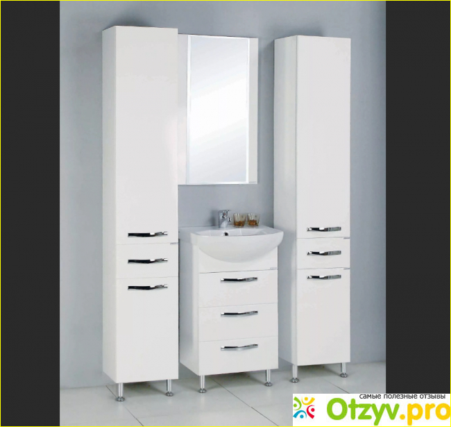 После покупки я ради интереса почитала отзывы разных людей о данном наборе. Некоторые из них были недовольны некоторыми параметрами и критиковали эту мебель. Я так и не поняла, чего они ждали? Для меня получить добротные влагоустойчивые шкафы за такую цену - это большой плюс. Мебель устойчива к внешним воздействиям. Да, пара царапин появилась, но тут моя вина, я это признаю. Помню, как пару раз ударила шкаф каким-то предметом, который несла в руках. Мне кажется, это был утюжок для выпрямления волос. От постоянного контакта с водой наша мебель не расклеилась, она до сих пор как новая. Конечно, не стоит специально разливать на тумбы воду и оставлять ее на них, лучше сразу протереть жидкость тряпочкой, убрав все лишнее. Я потопов не устраиваю, поэтому и со шкафами у меня все в полном порядке.