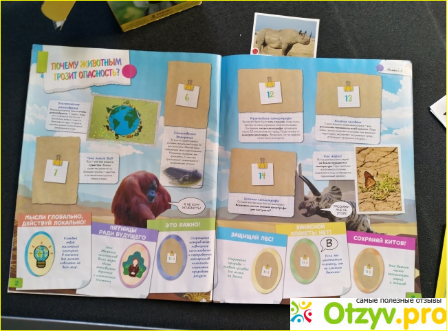Я не отдаю сразу все стикеры — сначала мы изучаем (я рассказываю дополнительно) про животных, которых нашли, закрепляем информацию. Сын реально старается не просто поскорее все наклеить, а запомнить информацию. Мы устраиваем тест, когда я задаю вопросы, опираясь на описание в альбоме. После выдаю новую пачку с наклейками. Иногда попадаются повторные наклейки, их мы приклеиваем на картон, чтобы получились карточки, и собираем отдельно. Такие карточки потом учимся сортировать по классам и видам животных.