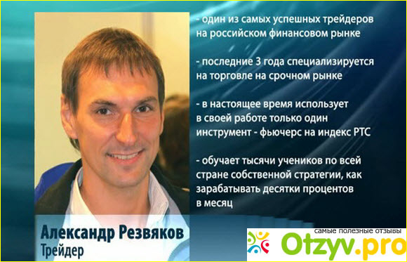 Сегодня в качестве героя своего обзора я взяла одного инвестора, трейдера с 15-летним стажем, практикующего бизнес тренера, который обещает всем желающим нюансы трейдинга, конечно, не бесплатно, за определенное вознаграждение. И этого товарища зовут Александр Резвяков — именно об этом сейчас и пойдет подробный разговор.
