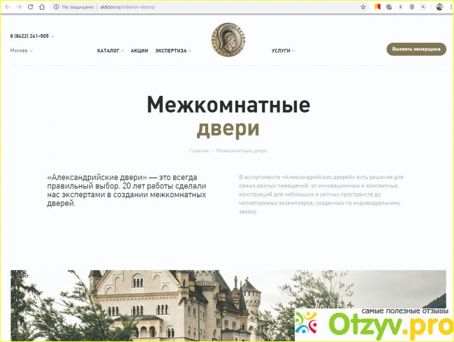 В данном обзоре рассмотрим сайт производителя качественных отечественных дверей, выпускающий продукцию под брендом «Александрийские двери».