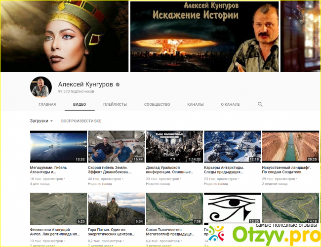 На его YouTube-канале можно найти множество плейлистов, включающих в себя разнообразные темы. Особенно заинтересовали меня плейлисты о утраченных технологиях допотопной цивилизации, тени погибшей цивилизации и нелинейной науке физике. Видно, что Алексей Кунгуров уделяет внимание не только актуальным темам, но и историческим аспектам.