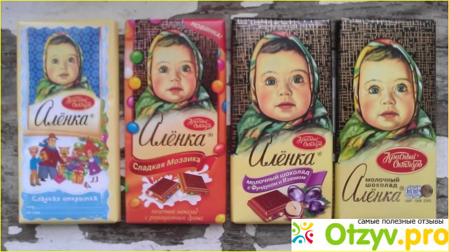 Аленка молочный шоколад от кондитерской фабрики Красный октябрь заметно отличается от других марок. Красивое оформление обертки с красивой девочкой по имени Аленка появилось еще в советском пространстве, еще в далеком 1965 году.