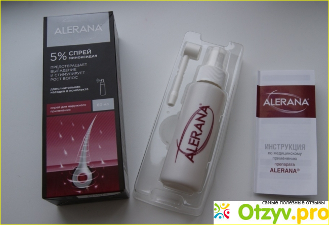 Алерана в своем составе содержит Пинацидил, который является "волшебным" ингредиентом для активизации кровообращения, интенсивного притока крови к волосяным луковицам и предотвращения негативного воздействия на волосяные луковицы. Пинацидил эффективен для роста волос, укрепления, придания им густоты, силы, блеска и жизненной силы. Конечно, пользоваться спреем нужно долго, первые результаты могут появиться через долгое время, где-то через 5-6 недель постоянного использования.