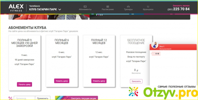 Цены требуется узнавать, во всех клубах по-разному. Первое посещение бесплатное по паспорту - это все что удалось узнать. Во всем остальном нужно оставить адрес собственной электронной почты, а затем вписать номер мобильного телефона, на который позвонит консультант позже. За дополнительной помощью можно обратиться в специальное окно в правом нижнем углу боту, который передаст сообщение куда нужно, и вы получите ответ спустя минуту, не более.