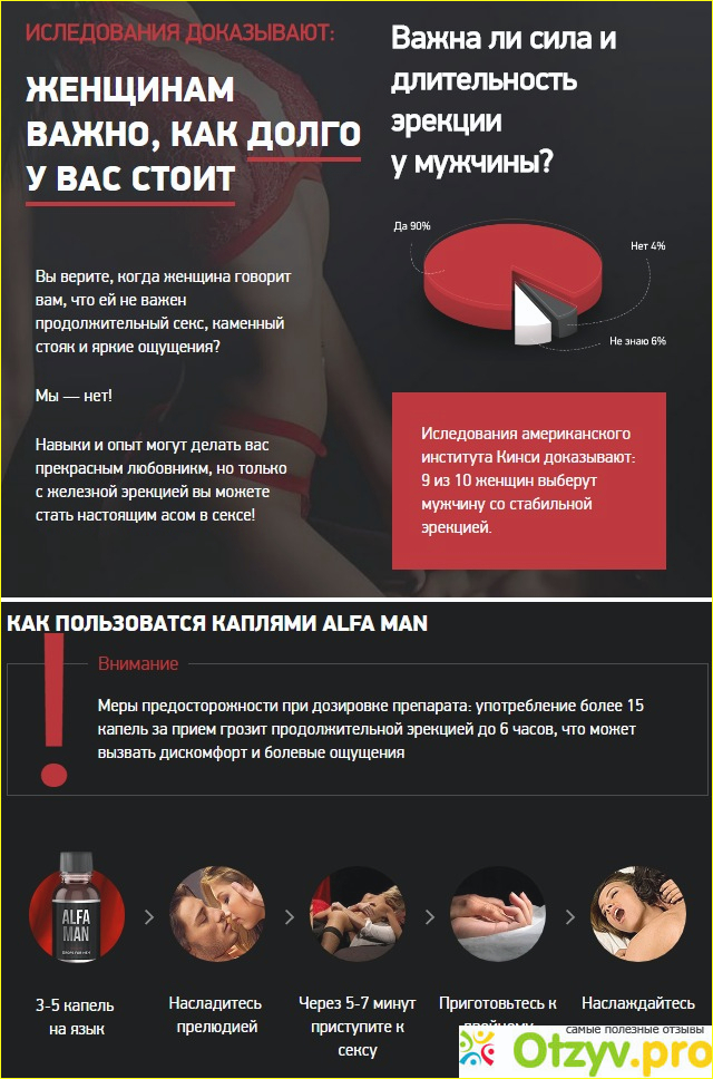 О возможностях Альфа мен, как афродизиака, могу сказать, что все написанное о препарате-правда. Сейчас мы ведем столь же активную сексуальную жизнь, как и 25 лет назад, когда только познакомились. Я купила и себе комплекс витаминов для женщин, приходится соответствовать. Внимательно изучив состав Альфа мен, хочу сказать, я не нашла в нем химических веществ. Не стану загружать вас перечислением состава, все есть в инструкции по применению, скажу только что это аминокислоты белкового происхождения, женьшень и эврикома, полезные не только для половой функции, но и всего организма. Конечно я не врач, но, думаю два раза в год-весной и осенью, очень даже здорово пропить Альфа мен.