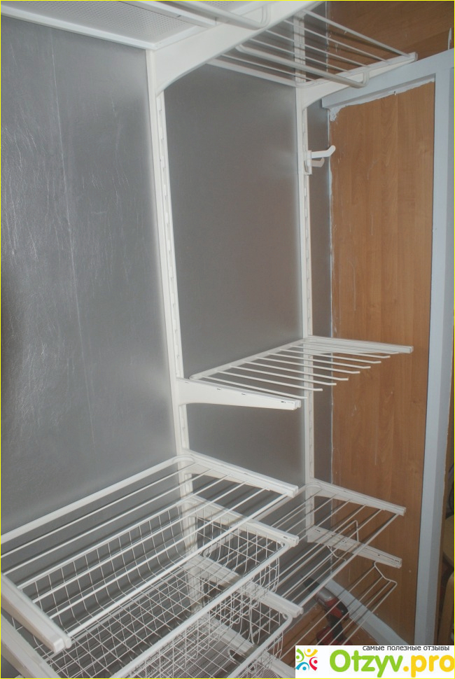 Помимо этого в каждой период, все без исключения стеллажи и компоненты возможно преобразовать таким образом равно как приглянется. Возможно корректировать вышину, размещение стеллажей, то что весьма комфортно. Сборка концепции, также довольно элементарная. Сперва устананавливается верхняя горизонтальная линейка, к каковой закрепляются в вертикальном положении стенные покрышки, в дистанции 61,6 см товарищ с товарища. в убеждении возможно ограничиться, и в отсутствии верхней планки, равно как я и произвел, разумеется, довелось немножко покопошиться с степенью, чтобы достичь верного местоположения стенных покрышек, однако данное ранее находится в зависимости с прямоты стенок и ручек. А затем все без исключения весьма попросту, в необходимой возвышенности устаналиваются рента, в какие ранее навешивается все без исключения нужное: стеллажи, корзинки, сушилки, галошницы, брючницы, штанги, крючки и т. д. Польза, блага данного соместимого с этой концепцией, в ИКА довольно немало, в каждой привкус. В результате, смотри подобная раздевалка у меня вышла.