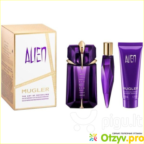 Аромат Alien от бренда Mugler можно встретить крема для тела. Это средство продается в очень красивой коробочке также приятного фиолетового оттенка. Также в продаже с таким же ароматом можно найти дезодорант спрей. А также если хорошо поискать, то в магазинах можно найти небольшой мини набор парфюмированных мини свечей.