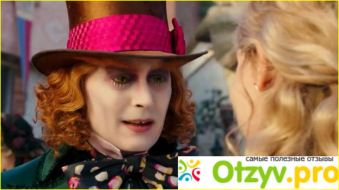 Также в этом фильме нельзя оставить без внимания Хелену Бонэм Картер, которая является своеобразной музой Тима Бертона, где она исполнила роль Дамы Червей. Эта актриса является украшением многих фильмов, вспомним например, известный нашумевший фильм "Бойцовский клуб". В этой картине она сыграла по-настоящему безумно, вложив много души, - роль у неё получилось по-настоящему яркая, и искрометная. Впрочем, это касается не только "Алисы в Зазеркалье", но и всех других фильмов, где она играет. Прекрасную пару для Хелены составил актёр Джонни Депп, который просто с невероятной естественностью сыграл роль Безумного Шляпника. Может во время просмотра создаться впечатление, что автор Льюис Кэрролл был своеобразным предвидцем и позаботился о создании персонажа для экранизации своего произведения. Правда, в данном фильме его настолько загримировали, что не сразу даже удалось его узнать. Первоначально подумала, что это не Джонни Депп, а какой-то другой, новый актёр. Жалко только, что он мало появляется в фильме.