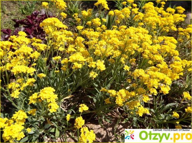 Многолетний алиссум бывает только желтого цвета. Причем размножается он только семенами и очень редко его можно размножить делением куста.