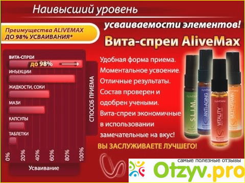 Говорить про эффективность и воздействие данной косметики и средств которые она производит можно очень долго, но зачем же много говорить, когда действительно у каждого человека есть отличная возможность, испробовать на себе воздействие средств для омолаживания от Alivemax. Зачем искать по магазинам всяческие бренды косметики, когда элементарное совсем рядом. Так что, без доли сомнения, косметика и средства Alivemax, заслуживают рекомендаций, ведь это довольно-таки прекрасный вариант.