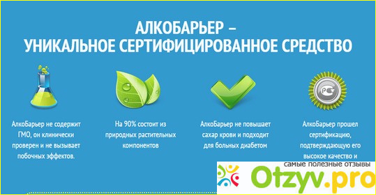 Алкобарьер - это эффективная сыворотка которая помогает избавить человека от алкоголизма в короткие сроки. Всего лишь 30 дней регулярного приема понадобится для того, чтобы полностью излечиться от алкоголизма. Данный препарат был разработан профессиональными классифицированными докторами, которые неоднократно протестировали препарат прежде чем выпустить его в продажу.