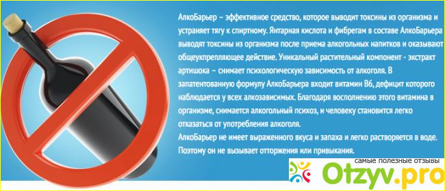 Препарат Алкобарьер имеет довольно много преимуществ, в отличии от других способов и средств для отказа от алкоголя. После того, как прочла инструкцию препарата, поняла что ничего лучшего и не найду.