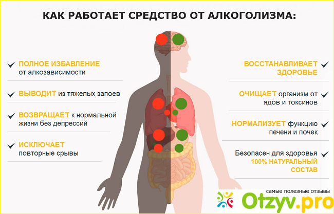 - поможет снять психологическую зависимость от алкоголя, уменьшается желание пить и проходит алкогольный психоз,
