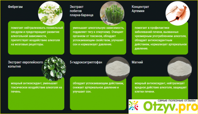 - фибрегам – снятие похмелья, ликвидация тяги к спиртному и желания забыться;