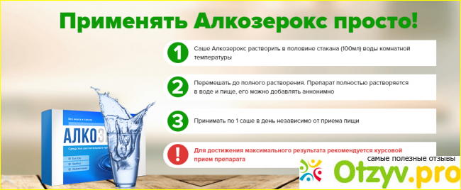 Всем этим пунктам соответствует средство, разработанное совместно врачами-наркологами и фармацевтами, учеными и специалистами в своей области. Выпускается оно в виде шипучего порошка для растворения в жидкости, а называется Алкозерокс от алкоголизма, купить его пока можно только через официальный сайт разработчика. При правильном применении препарат способен: