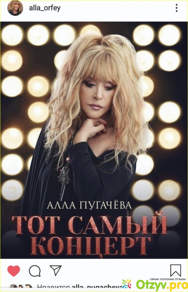 Буквально день назад в моей ленте социальной сети Инстаграмм высветился пост Аллы Пугачевой. В нем она сообщила, что 31 октября во всех кинотеатрах России стартует акция "Тот самый концерт". Чуть позже были выложены фрагменты концерта.