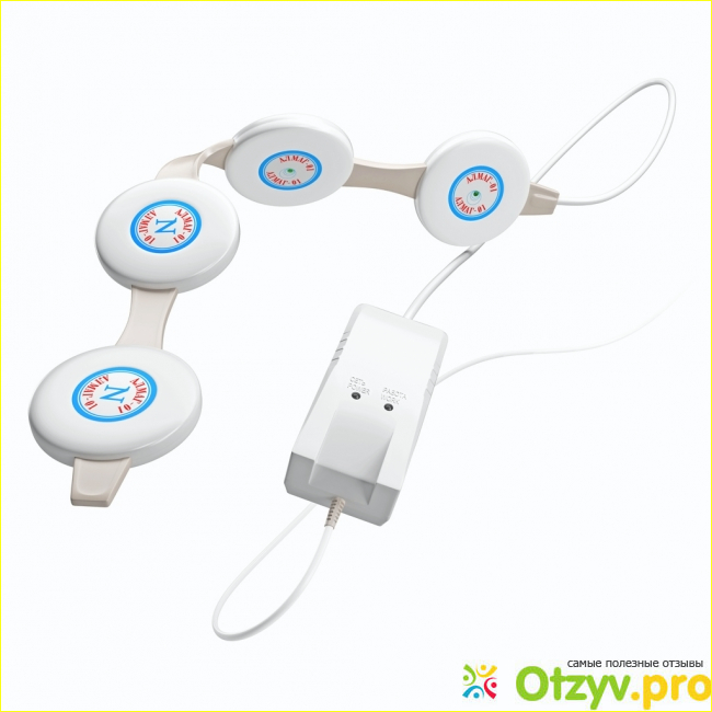 Однако, Алмаг 01 - это маленький приборчик, который легко и удобно держать в руках Выглядит он не совсем стандартно - четыре магнитных катушки, соединенные между собой и блок питания, при помощи которого и происходит управление.