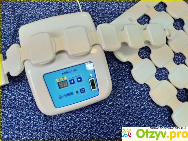 Аппарат хорошо помогает снять боль, убирает ломоту в суставах, главное регулярно его использовать (курсом), тогда и результат будет заметен. У дочери моей после родов стал проявляться варикоз на ногах. Она тоже лечилась прибором и после курса магнитного воздействия почувствовала улучшение, да и на вид ножки стали выглядеть лучше. Конструкция у аппарата очень простая и удобная. Есть специальная линейка из пластин, а есть прибор для точечного воздействия. После магнитного воздействия заметно спадает отек, уменьшается воспаление. Так что Алмаг 02 показал себя только с лучшей стороны в плане терапевтического воздействия. Из минусов этого прибора довольно высокая стоимость, но здоровье конечно того стоит.