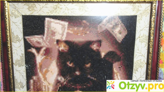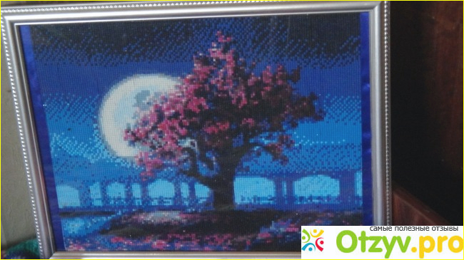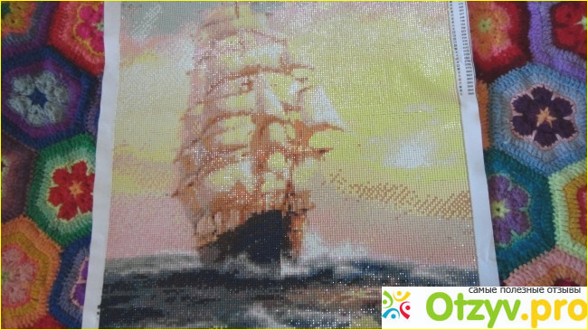 Ну и сама картина. На ней имеется защитный липкий слой, который мы отлепляем и на это место приклеиваем подходящий по номерам кристалл.
