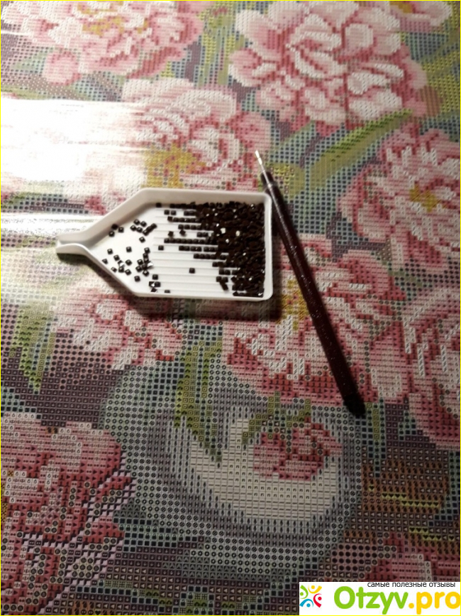 Стилус хорошо цепляет стразы, приклеиваются они также надежно. Мне не понравилось некоторое несоответствие оттенков по схеме, но к этому привыкаешь и просто начинаешь знать и делать. Работа у меня шла гладко, быстро и я уже планировала в какой багет ее помещу и где повешу. В целом, я осталась довольна на 85% . Картина получилась очень красивая и уже украшает мою гостиную. Такой кусочек лета получился, цветы которые никогда не увядают. Рекомендую к покупке, сама же возвращаюсь на Алиэкспресс.