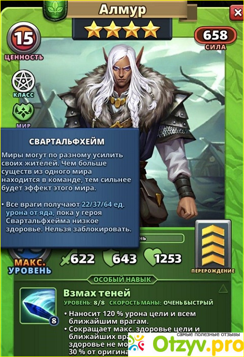 Данный герой в «Империи пазлов» обладает несомненным преимуществом у него быстрая мана. Умеет Алмур многое.