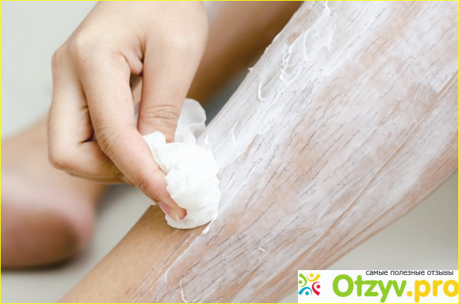 В процессе тело слегка щиплет – это работа щелочи. Если ощущается сильное жжение – следует удалить косметику. Превышено время ожидания или возникла негативная реакция на компоненты. После окончания действия волоски удаляются, а остатки крема тщательно смываются.