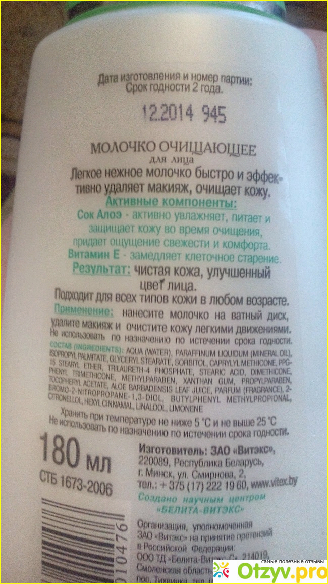 Также естественно есть активные компоненты в это средстве: алоэ вера - увлажняет, питает и защищает кожу от вредных факторов, после применения остаётся приятное чувство свежести и очищения. Там ещё присутствует витамин Е, ну он очень полезен для кожи, особенно для возрастной, а также для молодой так как он её очень хорошо питает и увлажняет.