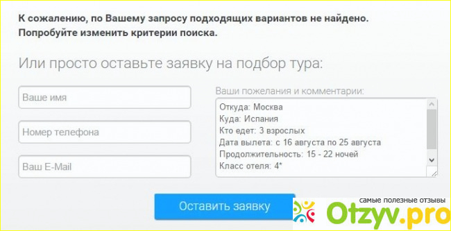 У меня получилось так, что нету туров и мне предлагают оставить заявку.