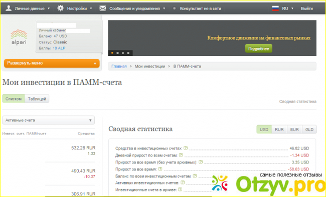 С выводом денег ничем помочь не могу. Выводить не пробовал, так как пока что я в общем небольшом минусе по инвестициям, пока набираю капитал. На фотографиях видно, что есть мониторинг памм-счетов общий и лично тех, в которые вложился. Сами номера стер, чтобы не было рекламы)).