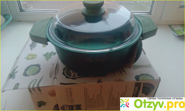 Еще я увидела в ассортименте, который был представлен на сайте, литую кастрюлю со стеклянной крышкой из этой же серии. Про Dr. Green я специально искала информацию, они делают утолщенные стенки, что позволяет готовить на слабом огне, поскольку температура в процессе готовки равномерно распределяется по всей поверхности. И сама посуда у них из высокосортного алюминия, что тоже большой плюс для меня.
