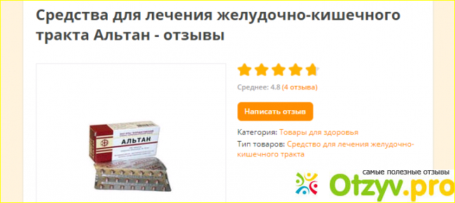 Теперь о личных впечатлениях и отзывах на препарат Альтан. Не один месяц помучившись с гастритом и пропив курс лекарств, назначенных врачом, я ожидаемого облегчения не ощутила. И тут подруга мне посоветовала Альтан - она тоже страдает хроническим гастритом, и по ее словам, это средство буквально за неделю убрало боли и прочие неприятные симптомы, причем даже без соблюдения диеты. С учетом того, что препарат растительный и противопоказаний не имеет, я решила его пропить. Принимала по 2 раза в день до еды, и попутно придерживалась диеты. Но почему-то Альтан мне не помог, хотя принимала его две недели ( правда и никакой аллергической реакции тоже не было, к счастью).