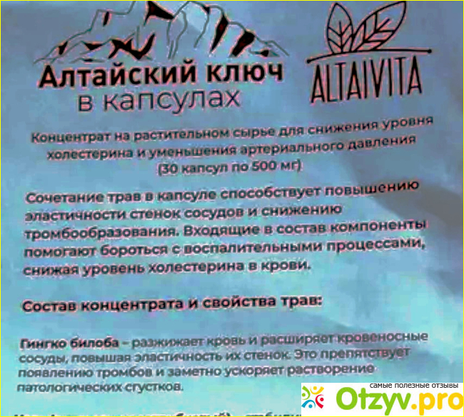Данные капсулы с экстрактами растительных компонентов от компании Алтайвита я решила приобрести в профилактических целях для своей матери, которая плохо переносит многие химические препараты. Она уже продолжительное время страдает у меня от давления. "Алтайский ключ" является довольно интересным продуктом, разработанным на основе природных компонентов, которые имеют положительное влияние на уровень кровяного давления.
