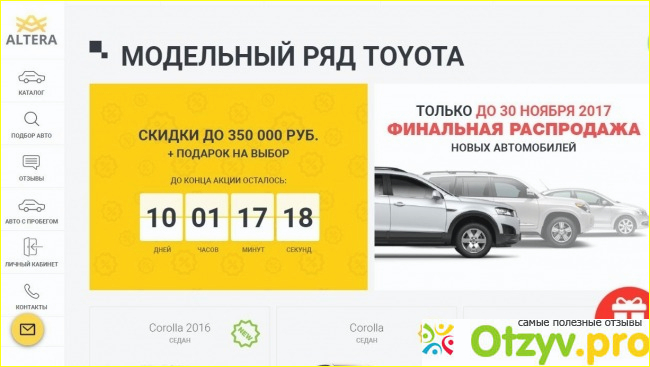 Уже после данного инцидента я начала читать отзывы про автосалон Altera, и что вы думаете, все как один писали негативные отзывы про данное место! Исключение составляют лишь заказные отзывы, которые все, как один, очень уж чересчур хвалебные! Из негативных отзывов мы с мужем и узнали о схеме, которую проворачивают менеджеры с доверчивыми клиентами. Оказывается, они специально заманивают потенциальных покупателей по телефону в свой салон. А уже в салоне менеджеры начинают "обрабатывать" клиентов. Многим людям становится жалко потерянного времени, поэтому они соглашаются на другие, более плохие условия покупки автомобиля.