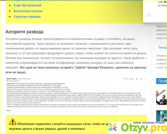 Не только мнения людей, которые оставляют текст на различных форумах, могут описать происходящее на нашем сайте, но и статьи на отдельных веб-порталах. Umarkets публикует целый разоблачительный материал со всеми фотографиями и подробностями обмана. Советую ознакомиться, если все-таки заинтересовались этим проектом.