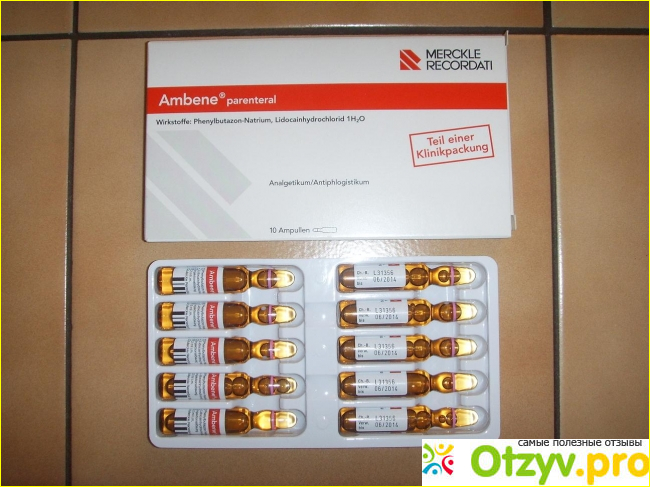 Амбене – прекрасный современный препарат, в его составе содержатся сразу же несколько активных веществ: Дексаметазон + Фенилбутазон + Натрия салициламид + Цианокобаламин + Лидокаина гидрохлорид. Вот такой шикарный состав нескольких действующих компонентов, благодаря чему удается быстрее пройти весь курс терапии и получить положительный эффект.