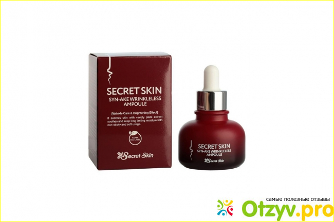Производитель обещает активацию восстановления кожи, ее обновление с помощью этого средства. Особый компонент - пептин змеиного яда способствует расслаблению мышц лица, а это, в свою очередь повлияет на выравнивание кожного рельефа. Сама косметика от Секрет Скин является очень популярной как в Корее, так и на мировом рынке. У них очень много интересных компонентов, необычных, я бы сказала, но их эффективность доказана с помощью специалистов этой области.