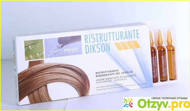 Dikson Ristrutturante - это восстанавливающее и питающее волосы средство, которое хорошо питает волосы, дарит волосам эластичность. Ампулы не только дарят волосам красоту и здоровье, но еще и успокаивает кожу головы