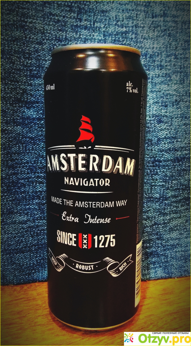 Водки я не хотел, пива то-же. Но меня заинтересовал один, интересный предмет. Это была алюминиевая банка ёмкостью 0.5л. Красно-коричневого цвета. Это пивной напиток-«Amsterdam navigator», крепостью 8%. Взял себе на пробу пару банок. Одну выпил по дороге домой. На моё удивление-запах и вкус мне понравился, немного терпкий и приятный-солодовый. Сразу-же ощутил приятный эффект-тепло и ровное опьянение окутало меня, словно-пуховым одеялом. Вторую банку, я выпил уже, на сон грядущий. Сон был просто волшебным. В общем это пиво мне, весьма понравилось.
