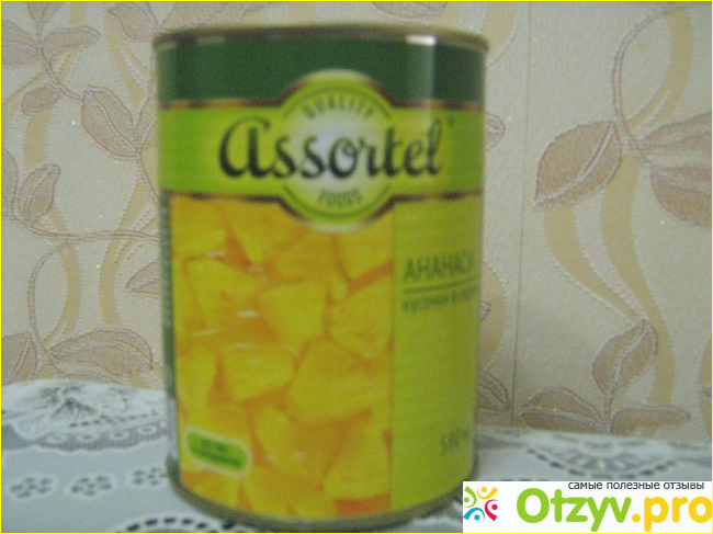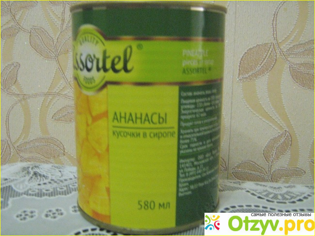 Сироп в меру сладкий, что меня очень устраивает. На вкус ананасы вкусные, но иногда на некоторых кусочках края жестковатые, наверное очищены близко в коже. Я считаю, что за такую цену в 42 рубля можно себе позволить консервированных ананасов, которых расфасовано 580 грамм. Ананасы, если верить производителю, приготовлены без ГМО и консервантов.