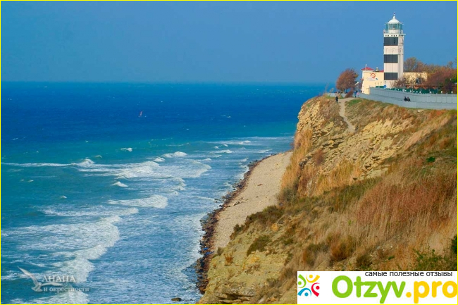 Считается своеобразной визитной карточкой года. Любимое место туристов. Расположен на мысе, прямо у подножья Кавказских гор. Из смотровой площадки маяка открываются просто невероятные виды на море и город.