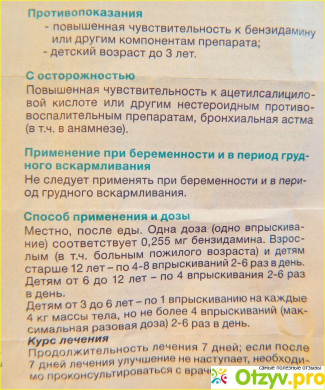 Как только купила спрей, сразу начала выполнять все рекомендации терапевта. Мне понравилось быстрое действие препарата в комплексном лечении. Обрабатывала горло -4-5 раз в день, и к концу первого дня лечения, уже стало гораздо легче глотать.