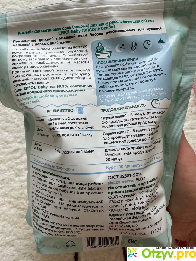 Соль рекомендована для детей с первых дней жизни. Купила я ее в аптеке. В составе 99% магния. Объем 500 гр. Покупала с целью уменьшения колик. Но при этом у соли большой функционал. После принятия ванны у ребенка улучшаются пищеварительные процессы, ребенка меньше и реже мучают кишечные колики. При этом соль оказывает благотворное влияние на детскую кожу, успокаивает, снимает раздражение, сыпь, зуд и покраснения, восстанавливает кожный защитный барьер. Также производитель заявляет, что принятие ванн укрепляет иммунитет малыша и хорошо сказывается на развитии костей и мышц, заметны улучшения и при гипертонусе.