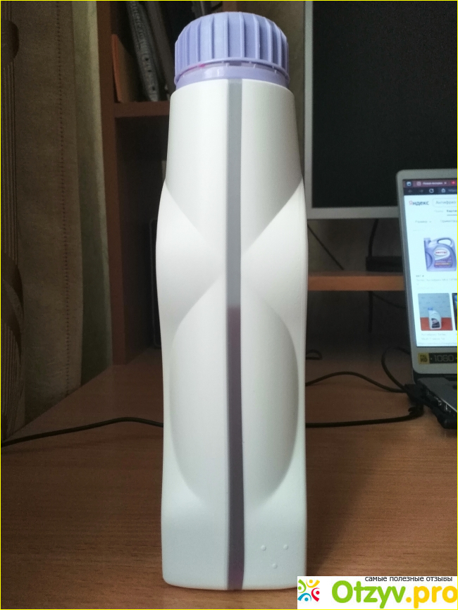 Цвет жидкости фиолетовый как большинство антифризов. Запаха практически не имеет. Себе брал бутыль 5 кг плюс 1 кг. Влезло идеально, но потом пришлось еще подлить так как в процессе эксплуатации уровень жидкости упал.