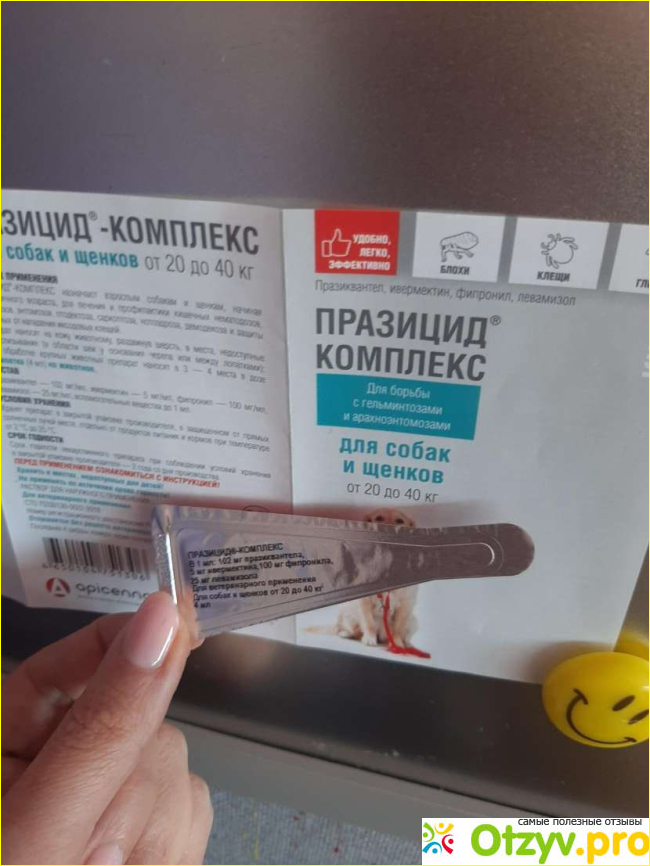 Но, когда встал вопрос по поводу обработки от гельминтов и защиты нашего Бади от блох, клещей, то естественно я тут уже задумалась, не стала ничего самостоятельно покупать, а решила проконсультироваться с ветеринаром. Он то мне про Празицид-комплекс для собак и щенков до 5 кг. поведал) Решила средство пробовать, так как сам же ветеринар посоветовал. И как оказалось не зря.