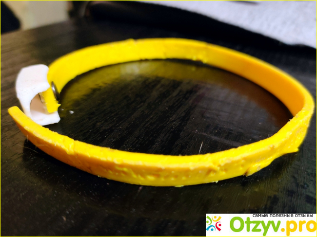 На выбор был желтый и синий. Дочка сказала, что котик коричневый, а значит цвет нужен тёплый. Длина изделия соответствует заявленной 35 см без учета застёжки. Одели на животное максимально свободно, пальцы легко проходят. Фиксируется он удобно, не растягивается и не спадает. Кончик обрезать не решились, зафиксировали скотчем. Но всё же он его погрыз, пришлось укоротить.