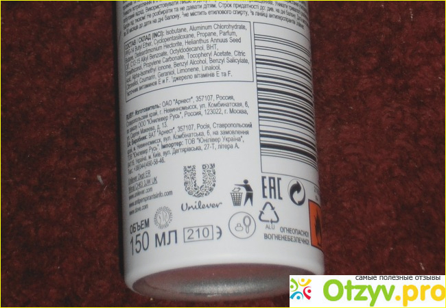 Розовым цветом начинается и оборотная сторона флакончика, но розовым цветом выделена не особо ценная информация, им выделено только небольшое описание к этому аэрозольному дезодоранту. А вот более ценная информация уже черным шрифтом выделена, но правда этот шрифт и мельче, но все же можно прочитать, тут есть способ применения и состав, и производитель, а также объем. С объемом тут тоже ничего нового нет, он составляет сто пятьдесят миллилитров.