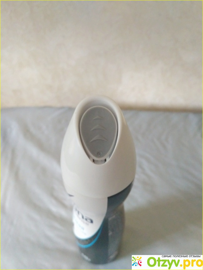 Чтобы начать распыление аэрозоля, нужна нажать на серую кнопочку, по направлению указанных стрелочек. Нажатие плавное, легкое.
