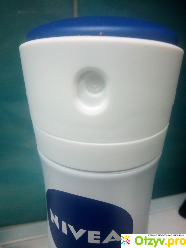 синей упаковке. Белый баллончик с синей кнопкой, с крутящейся крышкой, что очень удобно.