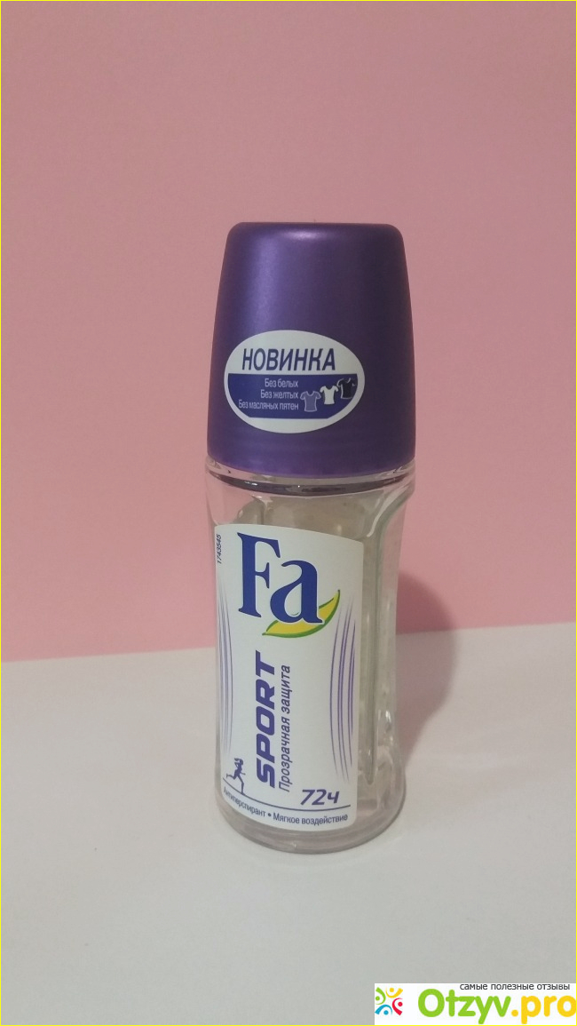 Я много перепробовала всяких средств от пота, как дорогих, так и не очень, а достойный для себя так и не нашла. Из всех протестированных, мне более или менее понравился этот роликовый антиперспирант Fa sport. Он идет в стеклянной бутылочке, с фиолетовой откручивающейся крышечкой.