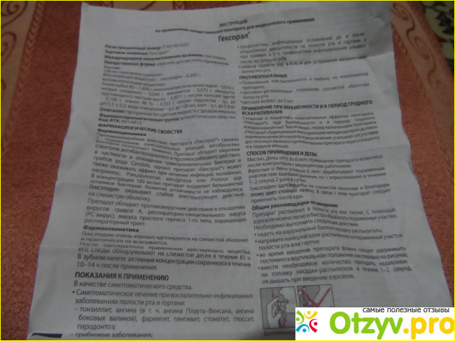 Гексорал довольно неплохо спасает от боли в горле, также совершенно спокойно может применяться при разного рода стоматах, вирусных заболеваниях. Обладает довольно специфическим привкусом, освежает дыхание на парочку часов, активно сохранясь в зубном налете, так что строго после применения не пить и не есть ничего хотя бы один часок.